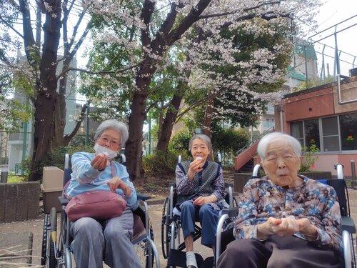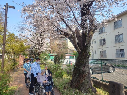 やわらかな陽気に包まれながら、ご入居者の皆さまとご一緒にお花見へ出かけてまいりました。