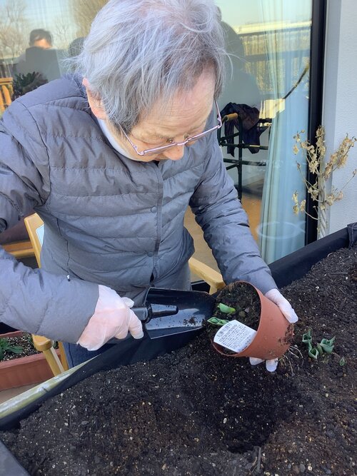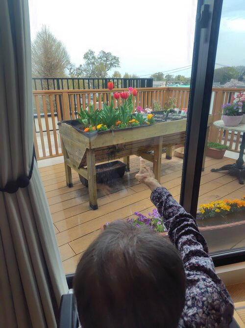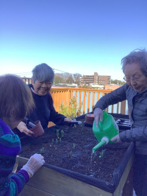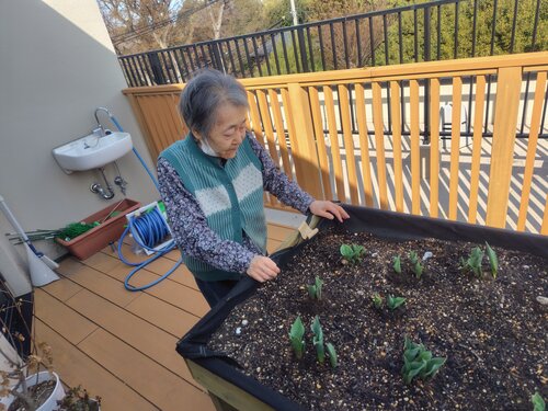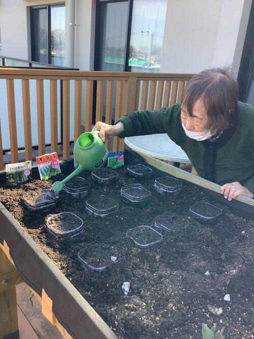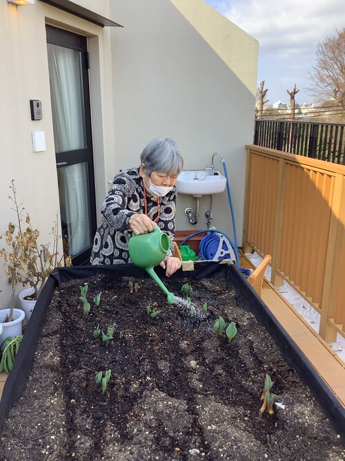 ご体調やご都合に合わせて中庭に足を運ばれ、ご自身で水やりをしてくださるなど