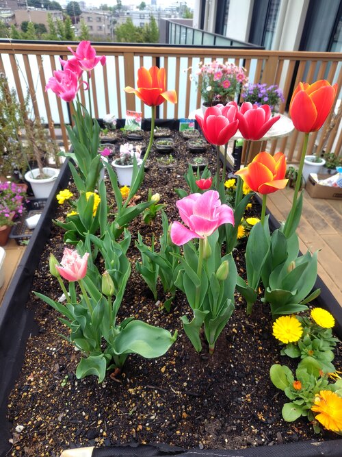 現在はチューリップやマリーゴールド、ビオラといった色とりどりのお花に加え、