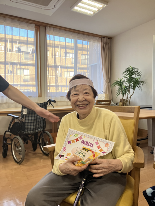 競技後は、ご入居者お一人おひとりに賞状と、ジョイフルキッズ様から