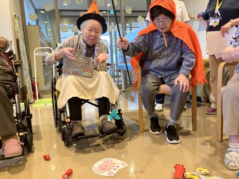 皆様仮装して釣りゲームを行い、一番多く釣り上げた方にはお菓子をプレゼントしました。