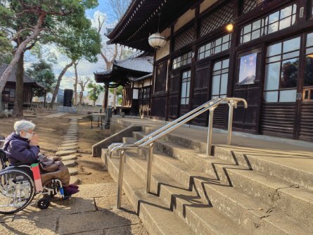 スタッフに支えながら階段を一段一段登られる方もいらっしゃいました。