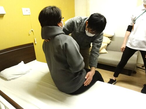今回もスタッフ同士が役割を交代しながら、声掛けのタイミングや手の添え方、