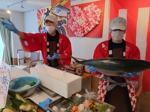 今年もホームに立派なブリが届けられ、イベントが始まりました。