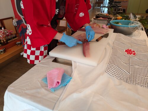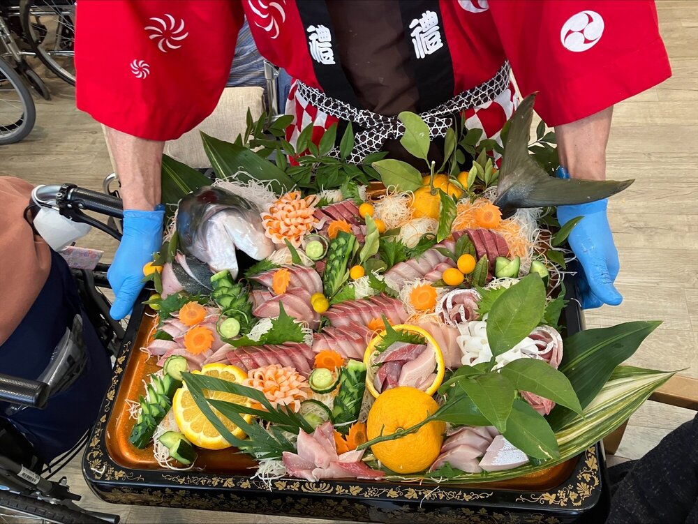昨年も開催し、多くのご入居者にお楽しみいただいた「ブリの解体ショー」。