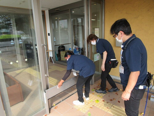 昨年は豪雨により1階が浸水被害に見舞われたことを教訓に、今年は正面玄関に止水版を設置。