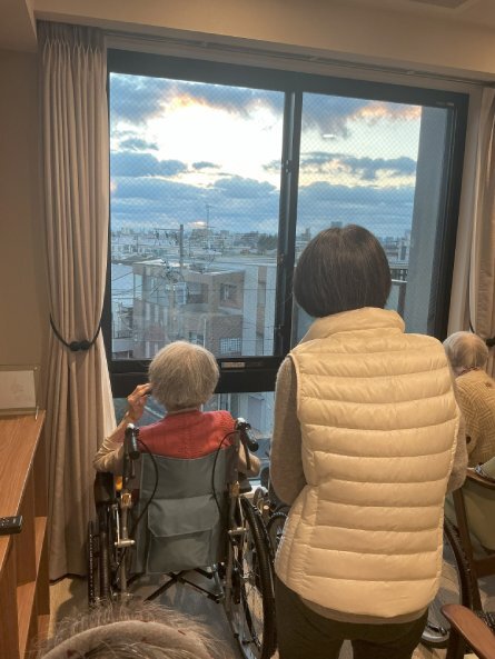 前日から日の出時刻を調べ、時間に合わせてお部屋を出てこられたご入居者。