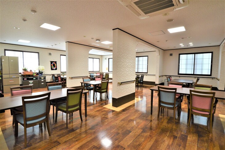| 共有設備 | エントランス、ダイニング(1階・2階)、健康管理室、事務室、看護・介護職員室(1階・2階)、応接室、浴室(一般浴槽・機械浴槽・特殊浴槽)、共用トイレ、厨房、エレベーター1基、ナースコール(共用浴室、トイレ) 等 |