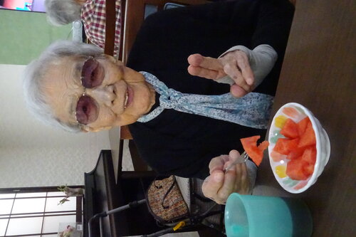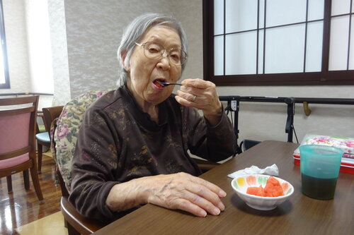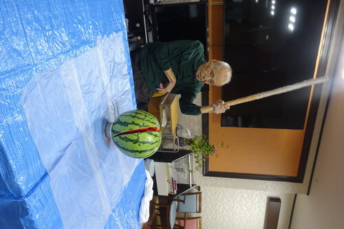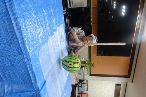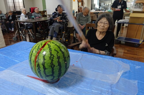 8月14日、ホームでは夏の風物詩「すいか割り大会」を行いました。