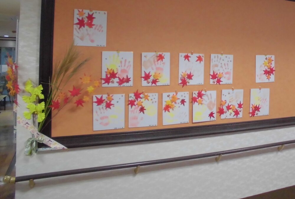 色紙に皆さまの手形を押していただき、紅葉に見立てました。