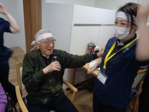 粉の中に隠れた飴を探す競技で、真っ白になったホーム長の顔は皆さまの笑いを誘いました。