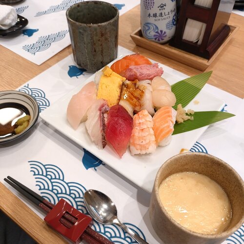 マグロにサーモン、エビなど、色とりどりの握りが並ぶこの日は、
