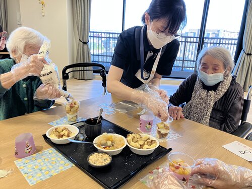 積極的にパフェ作りに参加され、始終和やかな雰囲気に包まれていました。