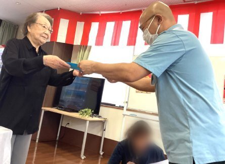 表彰式では、賀寿を迎えられたご入居者に賞状をお渡しし、