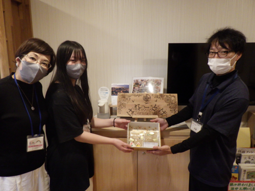 ボランティアでご提供いただいた磁石やバッジを贈呈しました。