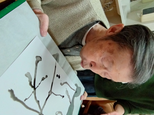 今回は、墨汁と絵の具を使ったアートに挑戦しました。