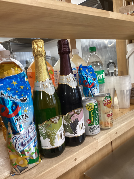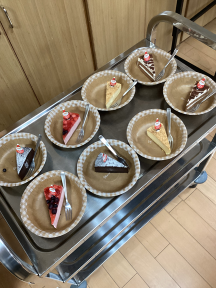 おいしいケーキやジュースでのティータイムと、サンタさんからのクリスマスプレゼントに