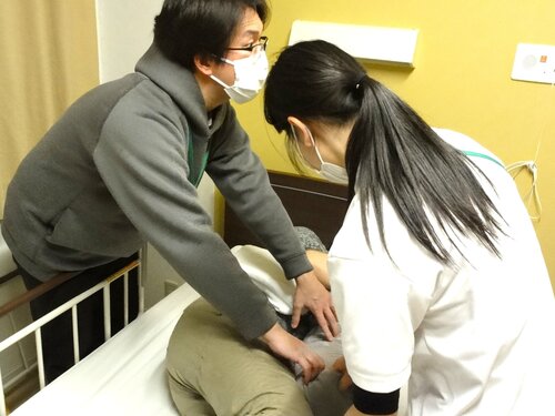 今回もスタッフ同士が役割を交代しながら、声掛けのタイミングや手の添え方、
