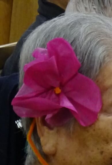 事前に、お花紙を使って髪飾りを手作りし、皆さまそれぞれに華やかな装いをご準備いただきました。