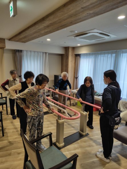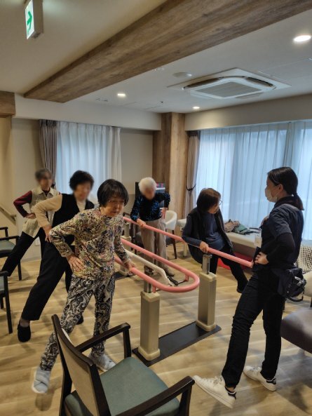 「よくみていてね。こんなに足が上がるようになったのよ!」